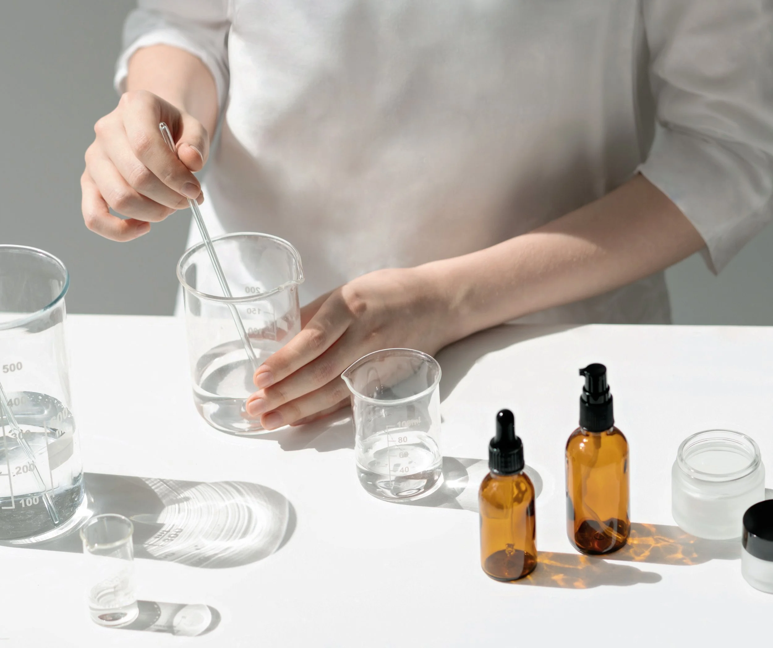 Уникальная формула продукта с нуля, пробная партия, тесты на стабильность и микробиологию.